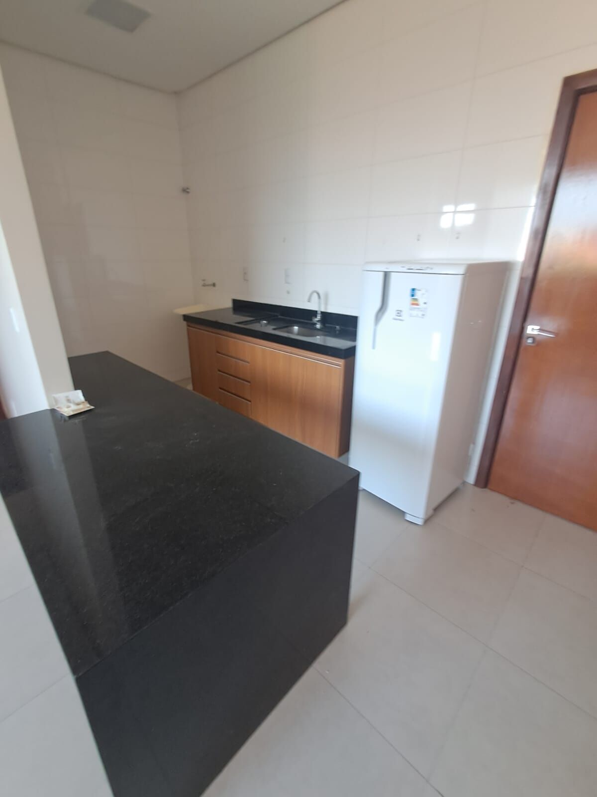 GELADEIRA, FOGÃO OU COOK TOP, MESA DE PEDRA COM 2 CADEIRAS