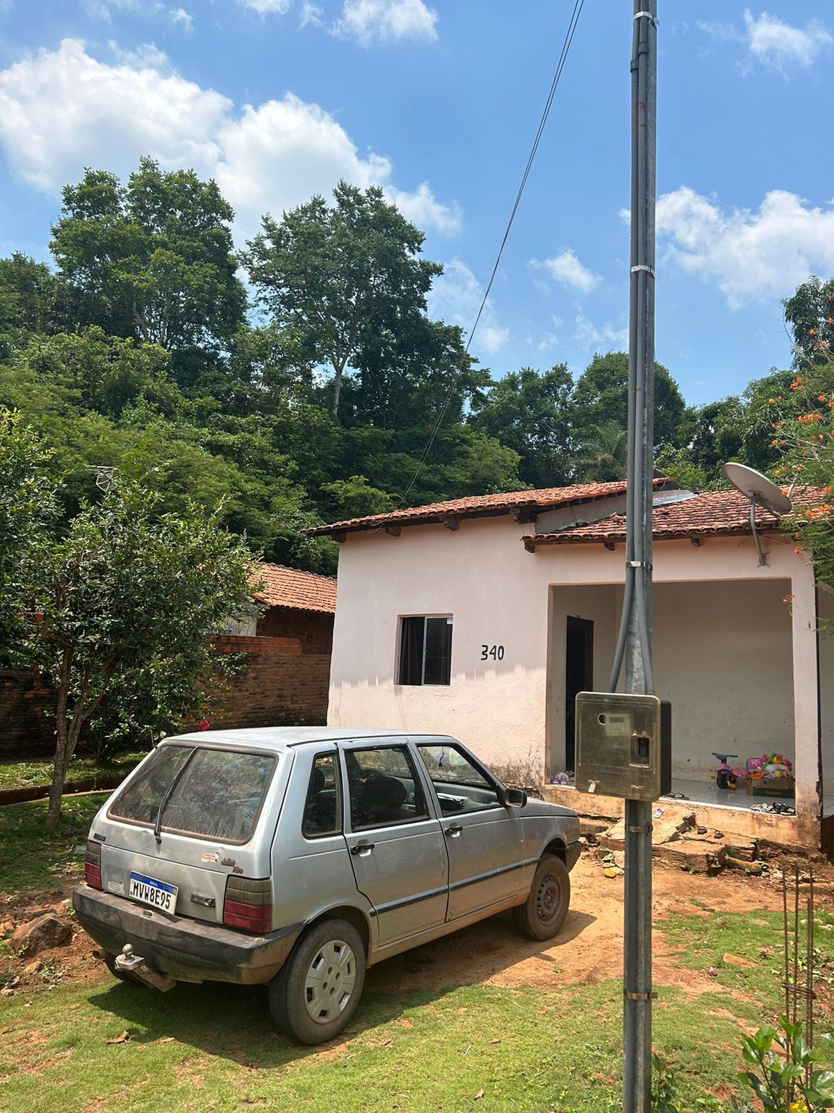 Uma casa com 3 quartos, 1 banheiro, sala e cozinha.